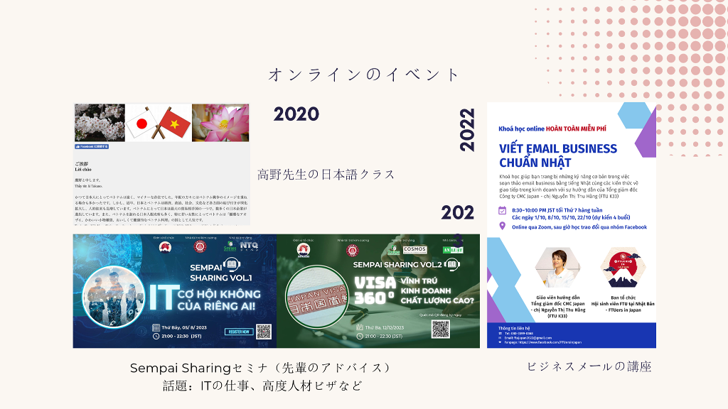 貿易大学在校生と日本に住んでいる卒業生をサポートします。